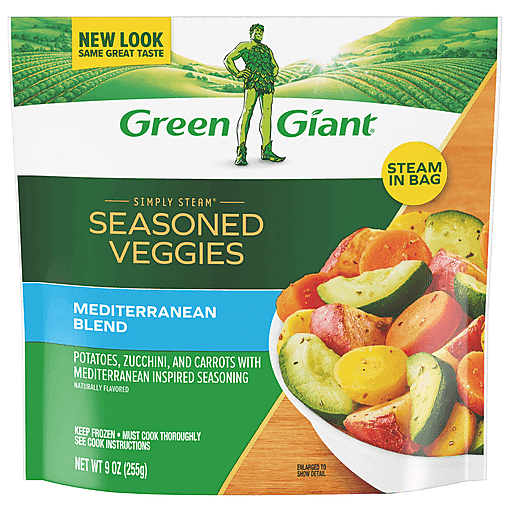 Green Giant Simply Steam Mediterranean Blend delivers the great-tasting steamed vegetables you and your family want to live a balanced lifestyle. A flavorful addition to lunch or dinner, each bag contains potatoes, zucchini, and carrots with a delicious blend of Mediterranean-inspired seasonings. Made with no artificial flavors or preservatives, Green Giant frozen vegetables make it easier to get your daily serving of veggies. This frozen vegetable medley provides 90 calories per serving, and is available in a convenient microwave-safe bag for easy preparation. To enjoy this Green Giant Mediterranean Blend, microwave it in the bag on high for 5 to 8 1/2 minutes depending on your microwave wattage, and let it stand for 1 minute before serving. Keep Green Giant Simply Steam Mediterranean Blend frozen until you are ready to cook and refrigerate any leftovers. Green Giant works hard to make it easy for you to be good to yourself.